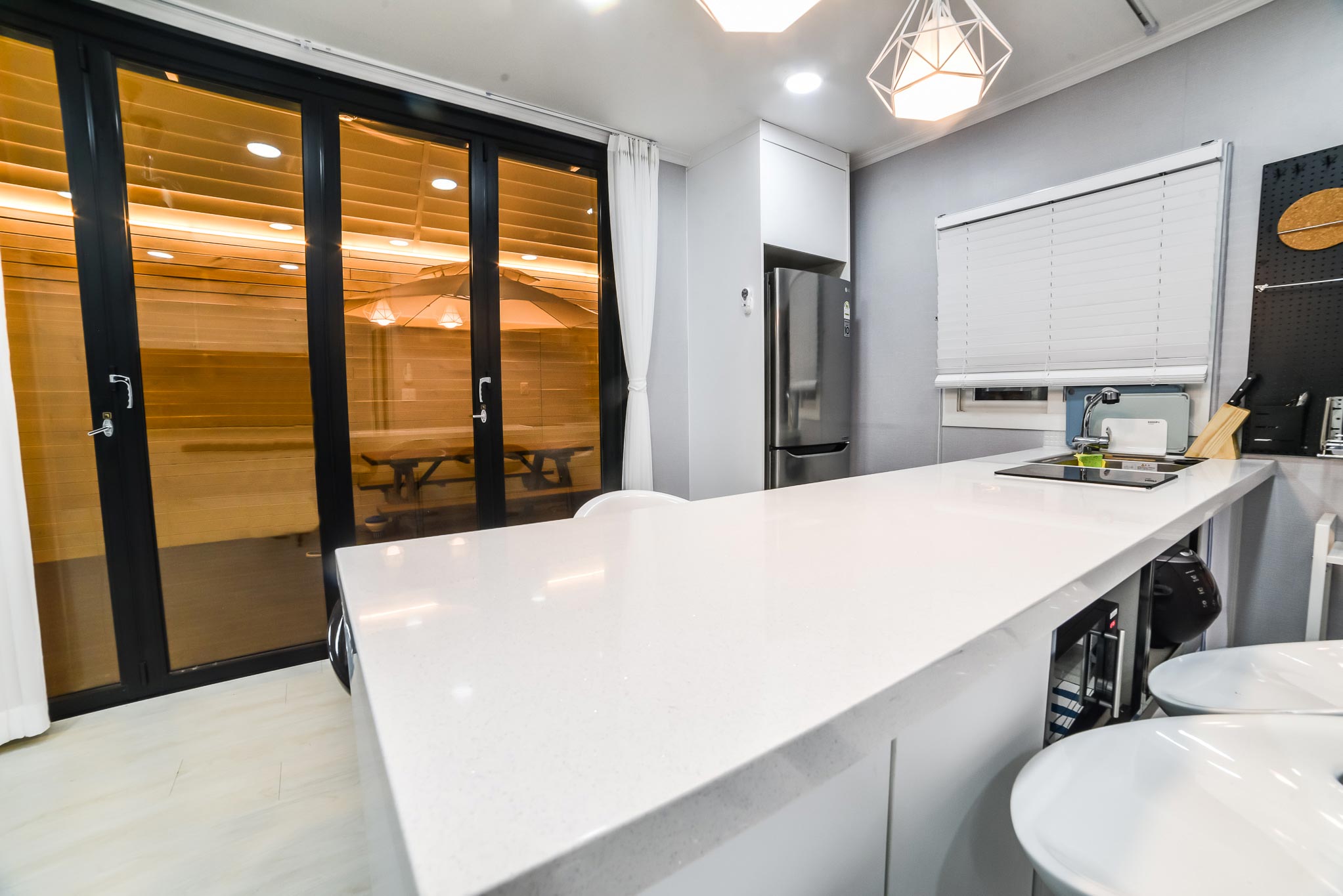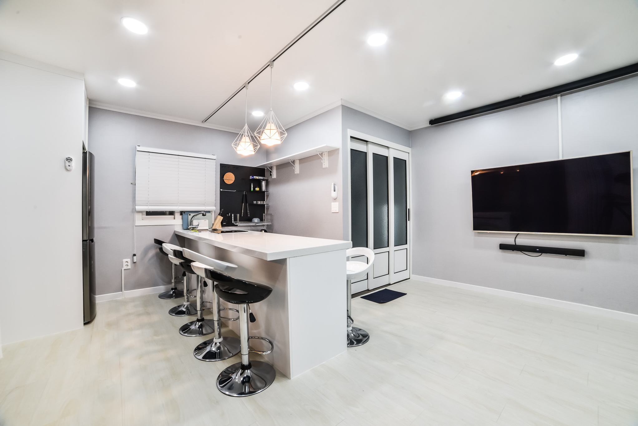 큰 거실에 요리도 해먹을 수 있게 돼있지만,